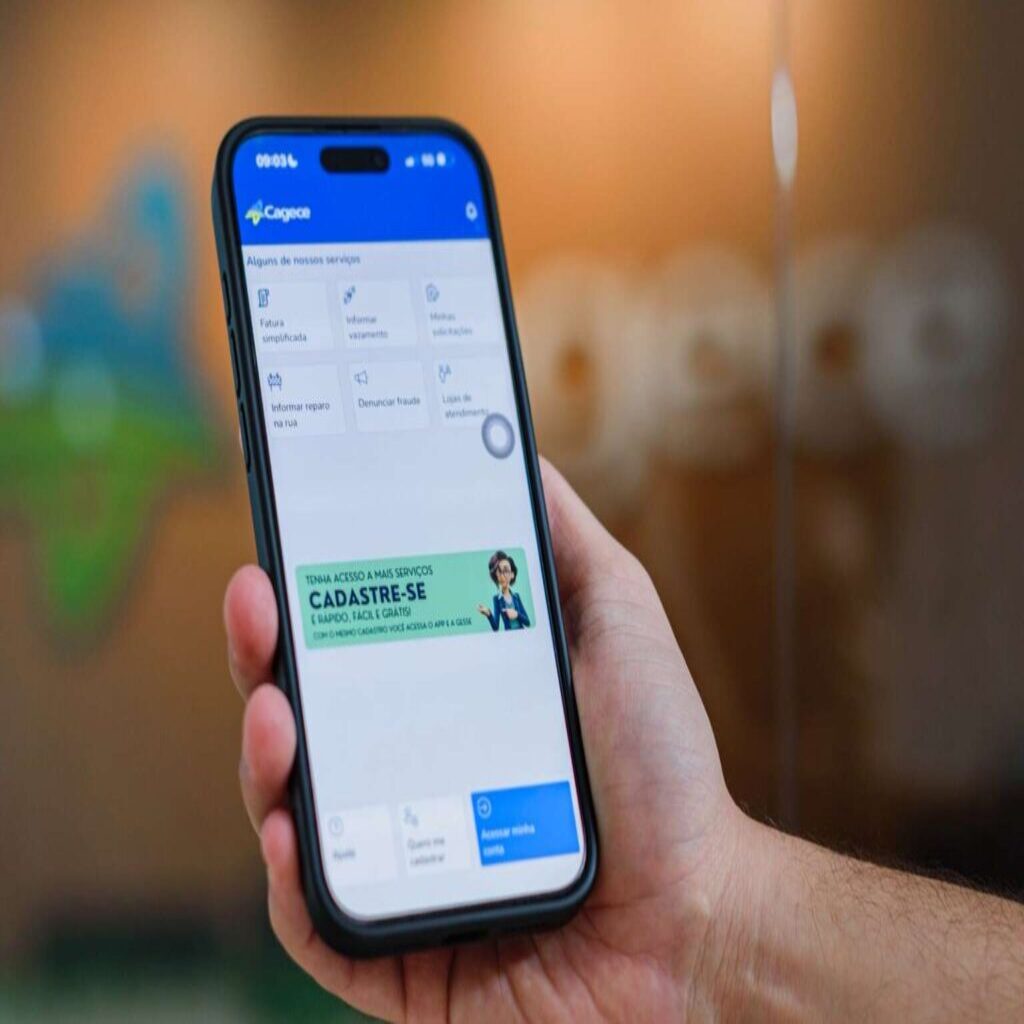 Por meio do Cagece App, os usuários conseguem resolver demandas básicas pelo celular, evitando deslocamentos até unidades de atendimento ou ligações telefônicas.