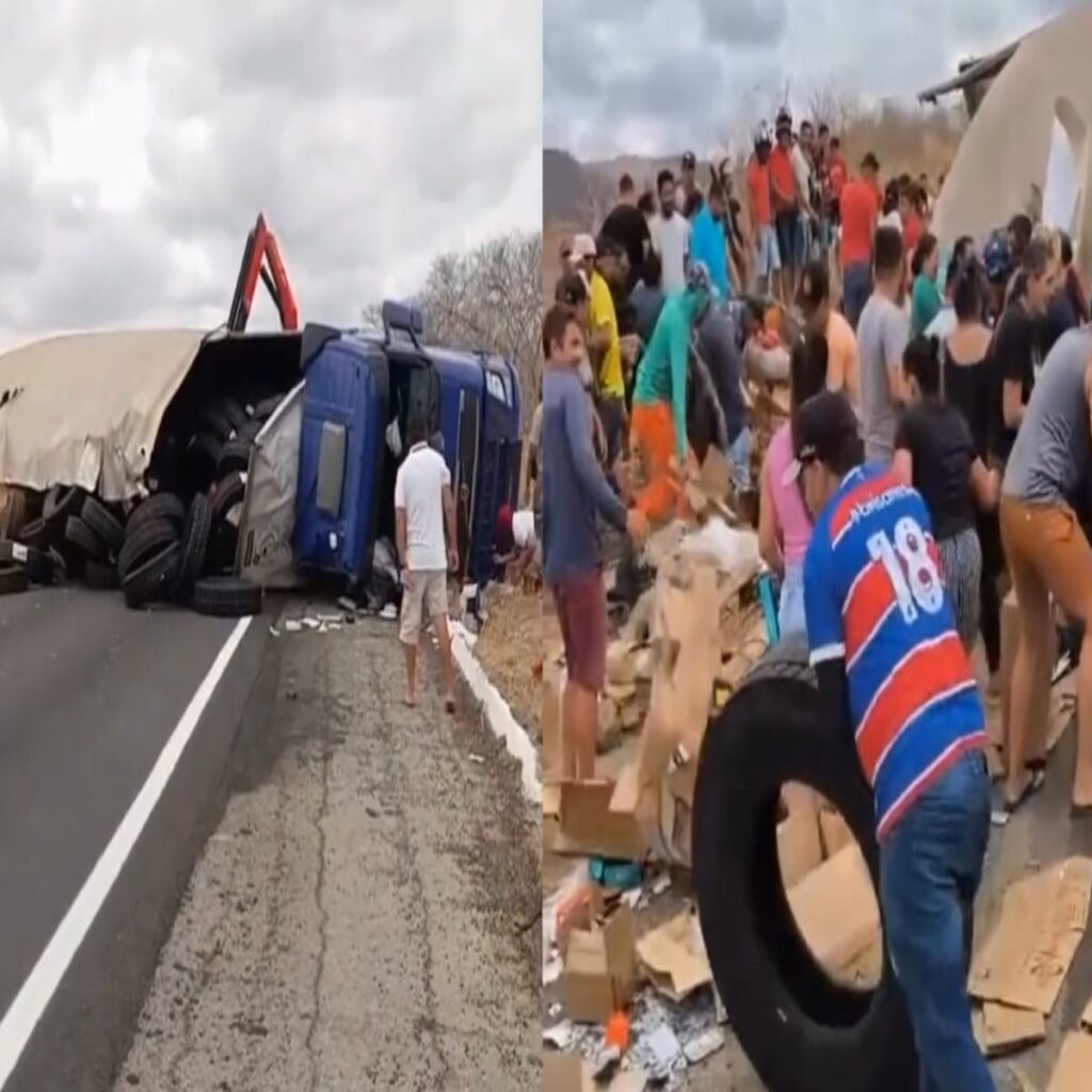 Um caminhão tombou na tarde deste sábado, 22, no km 384 da BR-116, nas proximidades do município de Icó, no Ceará. Vídeos do acidente compartilhadas nas redes sociais mostram que, antes mesmo da chegada da Polícia Rodoviária Federal (PRF) para isolar a área, diversas pessoas saquearam toda a carga espalhada pela pista.