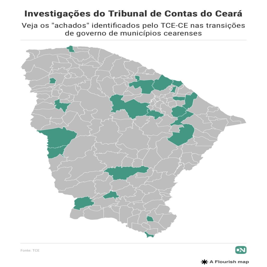 O Tribunal de Contas do Ceará (TCE-CE) abriu investigação contra 19 ex-prefeitos cearenses e outros 117 agentes públicos por suspeita de irregularidades na transição de governo após as eleições de 2024. O órgão fez uma força-tarefa para mapear, monitorar e auxiliar a sucessão municipal entre o fim do ano passado e a posse dos gestores eleitos, no início deste ano. Apesar da orientação para prevenir condutas ilegais, as fiscalizações ainda identificaram quase 100 desvios de conduta em 21 municípios.