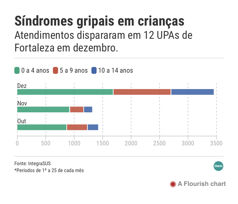 Na Emergência do Hospital Infantil Albert Sabin (Hias), por exemplo, esse perfil de atendimentos aumentou cerca de 30% em outubro e novembro, na comparação com os três meses anteriores.